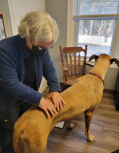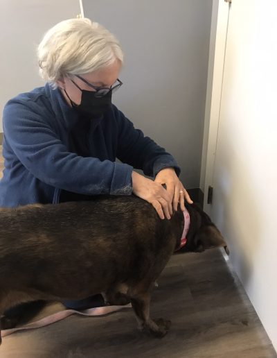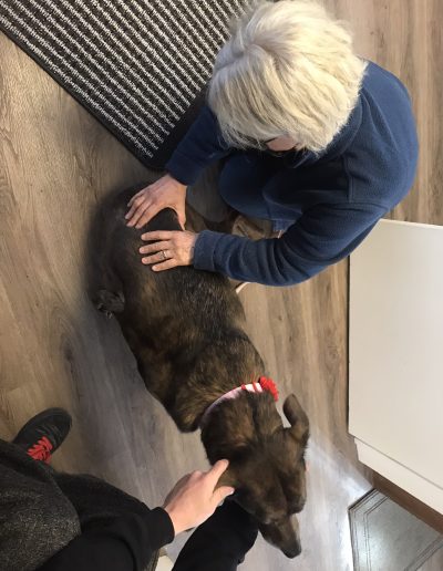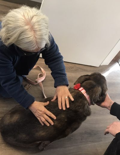 Fingers and thumbs are applied to specific points on the dog’s body. A very gentle rolling move is made over soft tissue, muscles, tendons, ligaments, and the connective tissue called fascia, that encourages the body’s natural ability to heal.